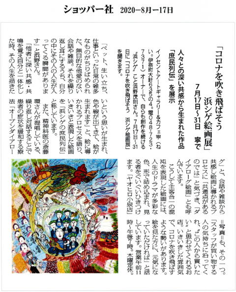 「コロナを吹き飛ばそう 浜シゲ絵画展」が紹介されました。 |