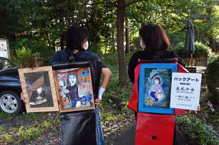 ![]() 赤、黒のバッグに浜シゲ作品を背負って ヴィエントの杜を歩いて見ませんか? ※バックアートパフォーマンスは 当日担当者にご相談ください! |