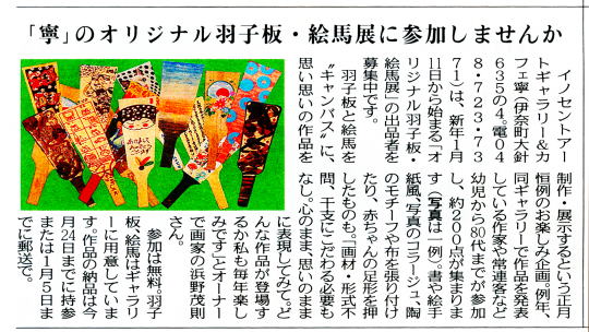 「寧」オリジナル羽子板・絵馬展出品募集の紹介が掲載されました。 ![]() |