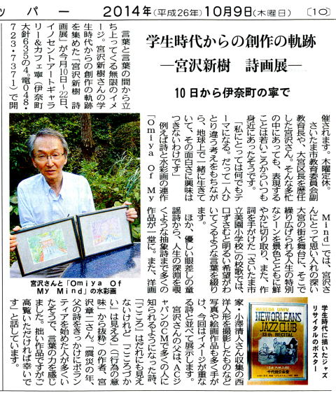 宮沢新樹 詩画展が紹介されました。 ![]() |