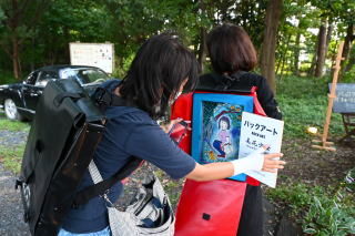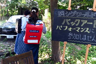 ![]() 赤、黒のバッグに浜シゲ作品を背負って ヴィエントの杜を歩いて見ませんか? ※バックアートパフォーマンスは 当日担当者にご相談ください! |